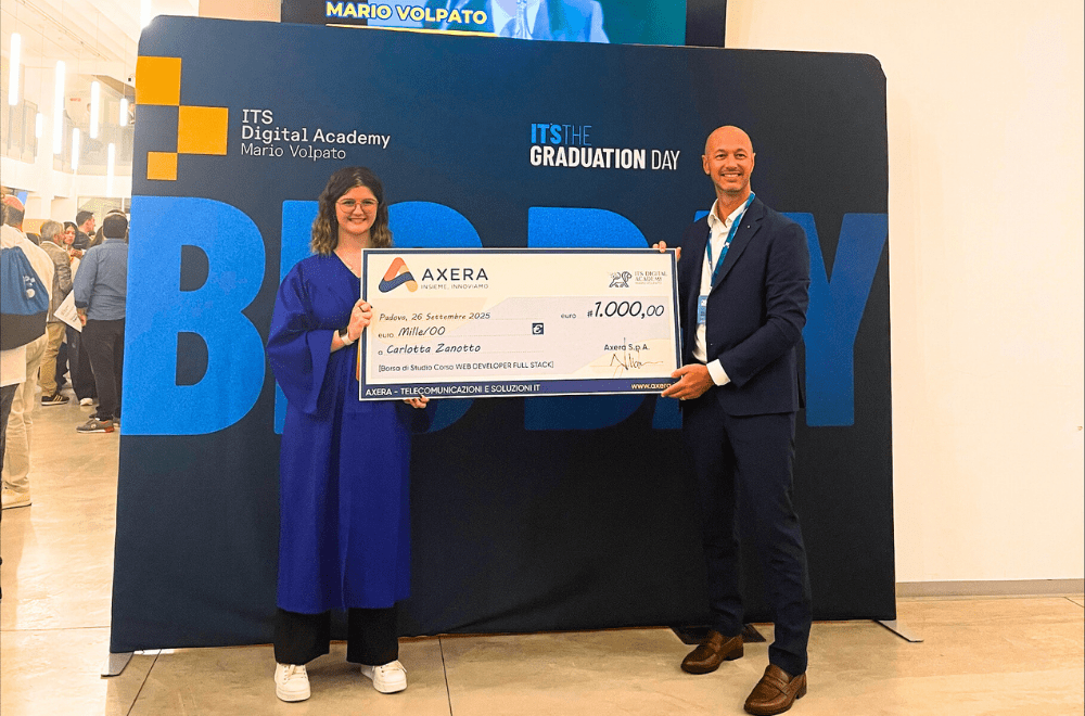 Nel tardo pomeriggio si è tenuta la cerimonia di consegna dei diplomi. AXERA ha avuto un momento di particolare rilievo con la borsa di studio da 1.000 €, riconoscimento che premia talento, impegno e merito.